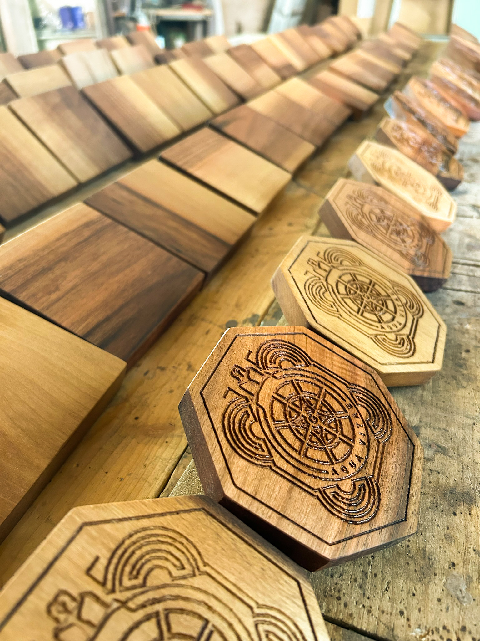 Pièces uniques, façonnées dans le bois centenaire et la résine.